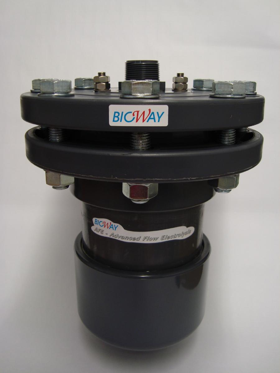 to CO2 and H2O. Same electrochemical reactions occur in stirred and continuous reactors, which are also known as precipitation reaction, metal hydroxides in flake form, to bind the organic impurities. These metal hydroxides are formed by dehydration to metal-oxides with organic contaminates - recyclable so that no residues remain ("0" - waste). These wastewater treatment processes are capable of large mass flows to cope with some 100 m³ / h. They are not subject to any risk of impairment - like biological systems - but are suitable for fully automatic controlled processes. As a by-product, hydrogen is generated at 50 A / 3600s (h) only 0.01141 m³/h which is for recovery of electrical energy too low. 7 V/ 30 A is a standard for EC application (210 VAh) - about 0.78 KWh/m³ is used by Mg-electrodes to form Mg(NH4)PO4 out of waste water. In generall EC needs 1.5 - 2.0 kWh / m³ waste-water.